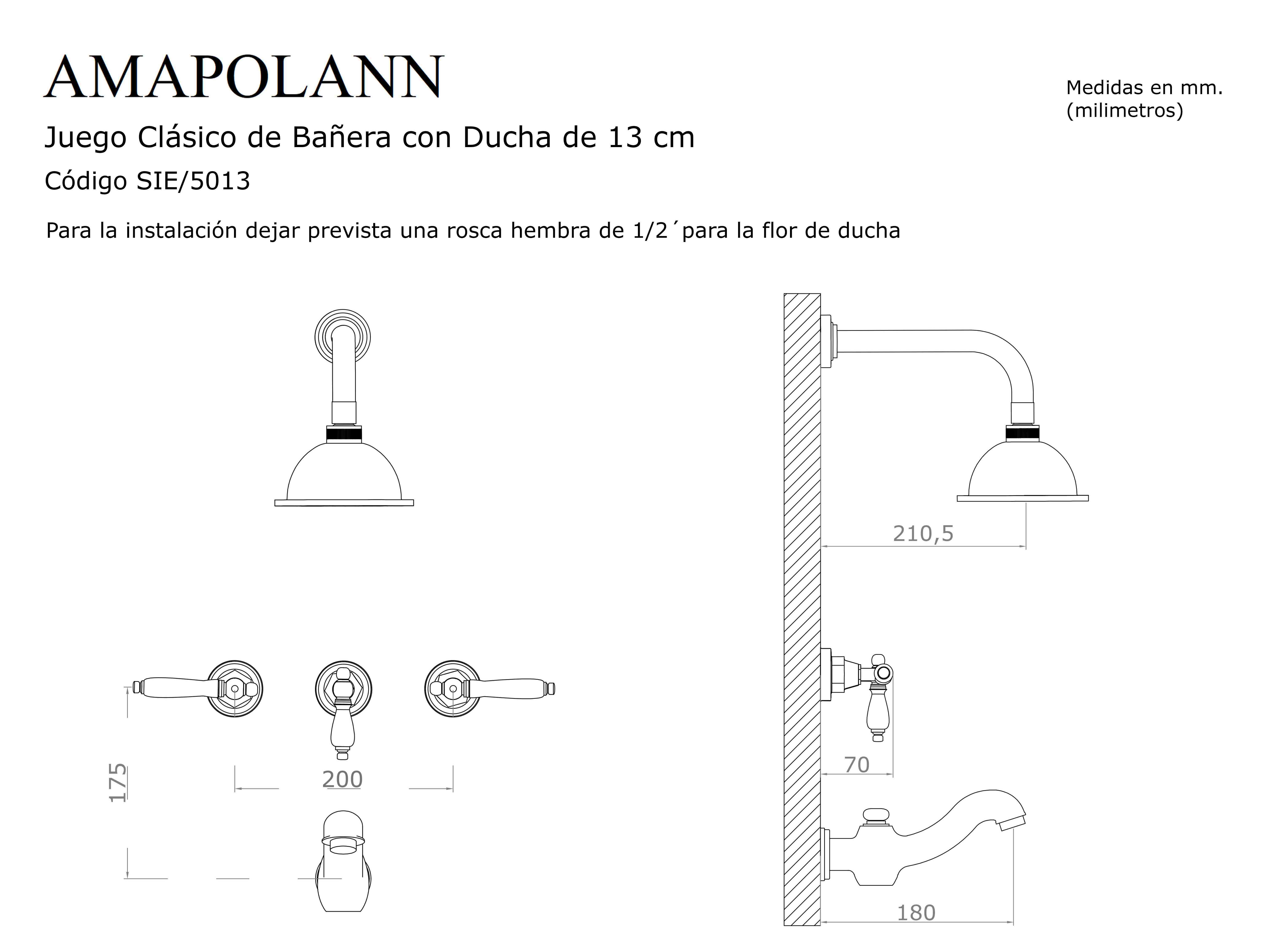 Juego Clásico de Bañera con ducha de Ø13